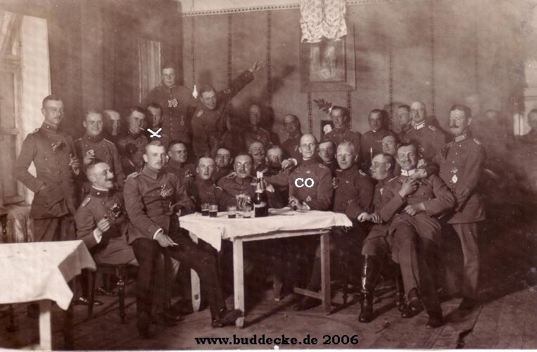 Feier bei der FA A 230 im Jahr 1916. Hptm. v.d.Goltz (CO) im Kreise seiner Männer.